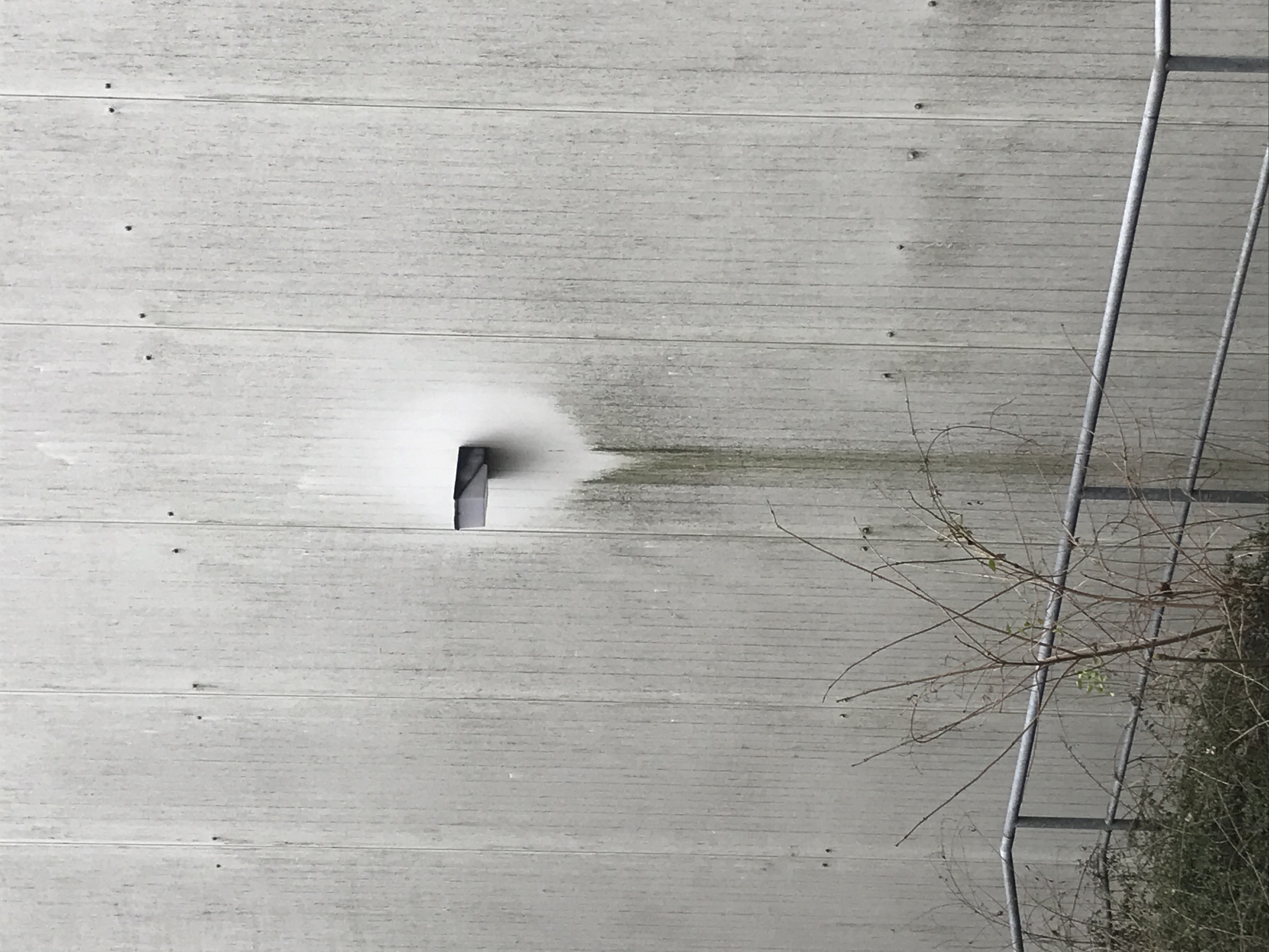 Auffällig ist allerdings, dass sich um die Leuchte herum ein heller sauberer Bereich eingestellt hat. Eine Erklärung wäre, dass die Leuchte im Betrieb starke Wärme abgibt und damit im Einflussbereich der Wäremstrahlung für eine schnelle Austrocknung der Putzoberfläche sorgt. Dadurch kann weniger Schmutz anhaften und der Bewuchs mit Mikroorganismen wird gehemmt. Es fehlt einfach Feuchtigkeit.