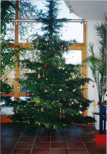 Den Weihnachtsbaum konnten wir in diesem Jahr in unserem neuen Wintergarten, der über zwei Etagen geht, aufstellen.