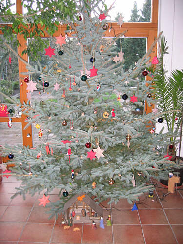 In diesem Jahr war der Weihnachtsbaum wieder ein bisschen kleiner, weil der Ficus in unserem Wintergarten mittlerweile zu groß geworden ist. Aber dafür war es eine Blautanne.