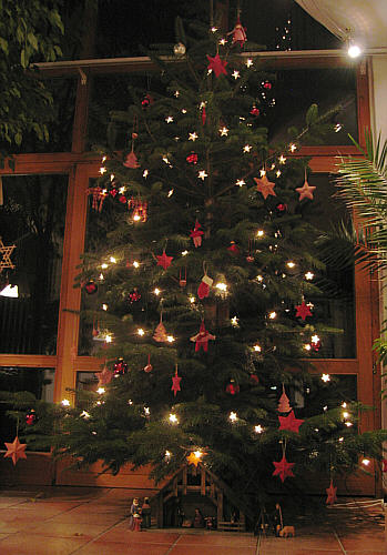 In diesem Jahr ist mein Großvater gestorben, aber ansonsten war es ein gutes Jahr. Unser Weinnachtsbaum ist drei Meter hoch und wieder schlicht in rot gehalten.
